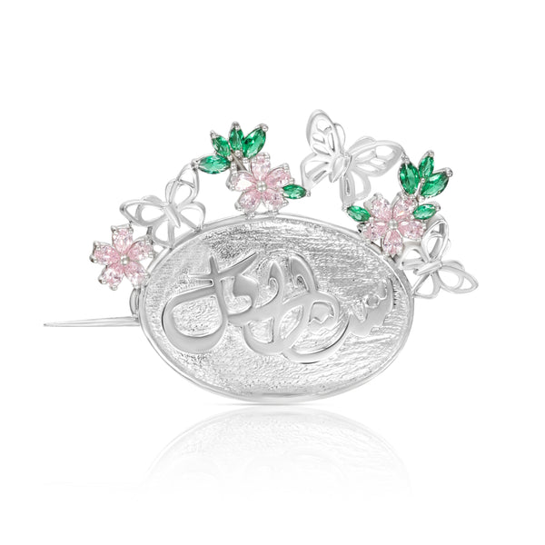 بروش فضة عيار 925 مطعم بأحجار الزركون الأخضر والبينك